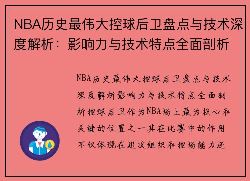 NBA历史最伟大控球后卫盘点与技术深度解析:影响力与技术特点全面剖析